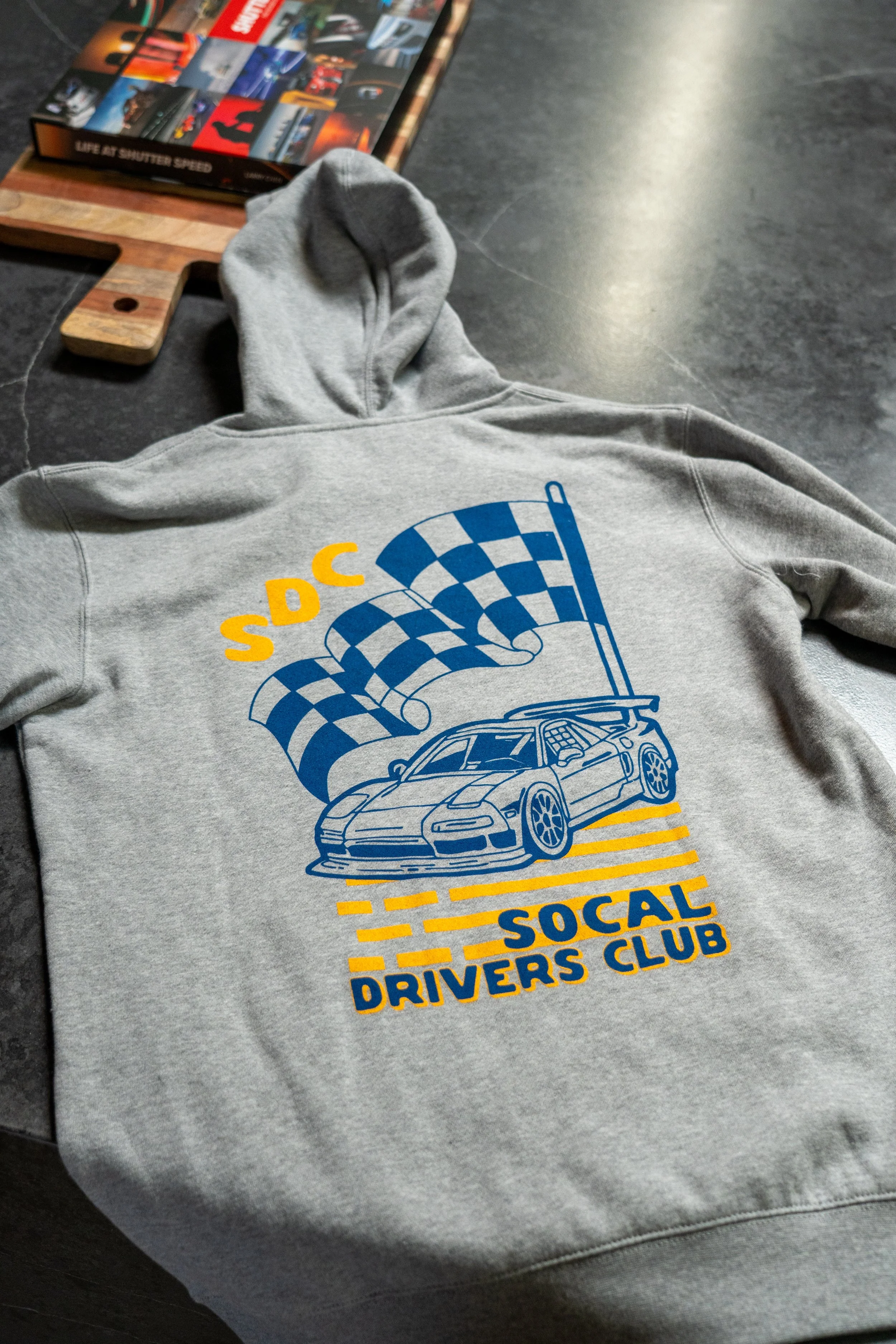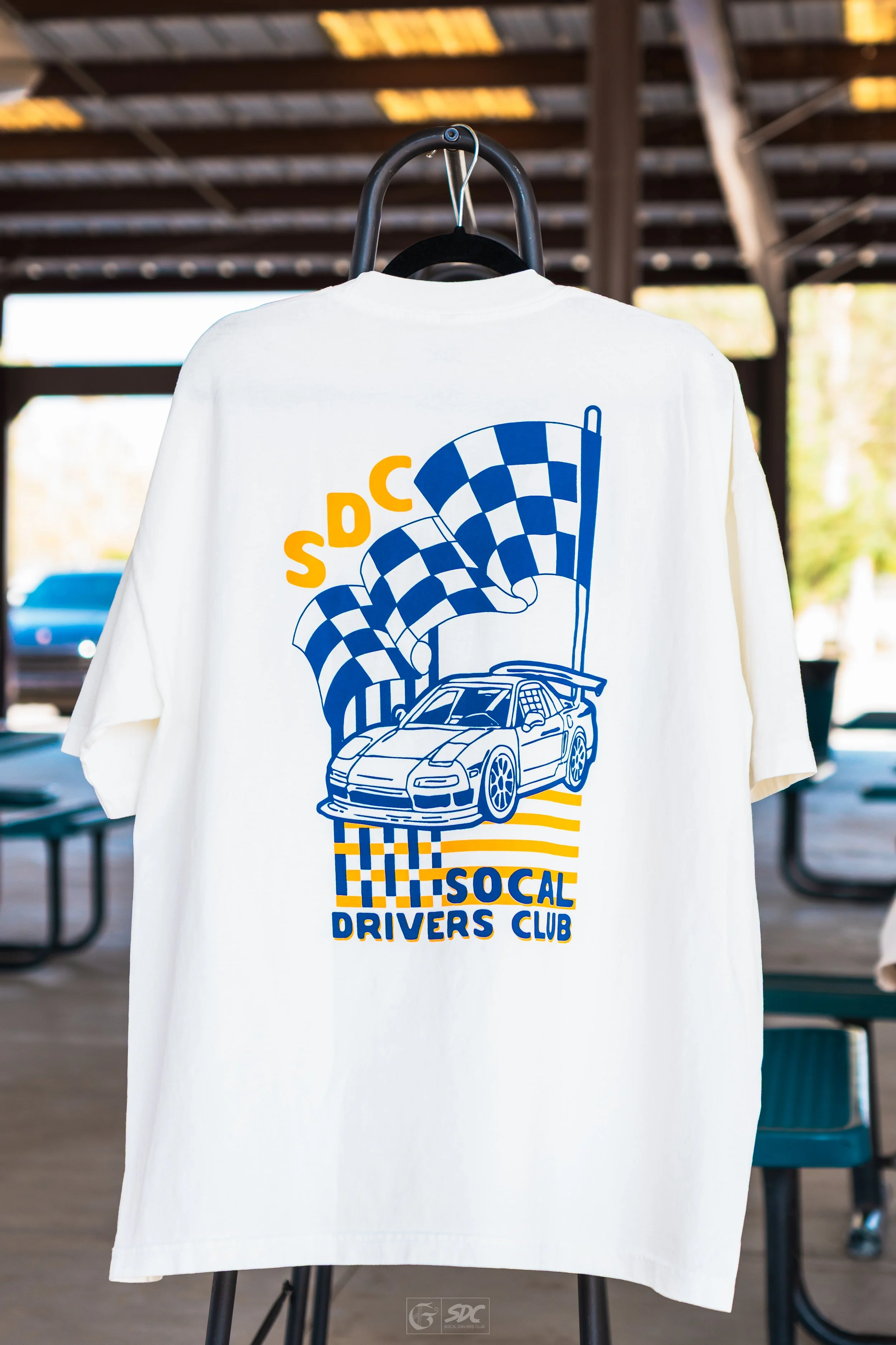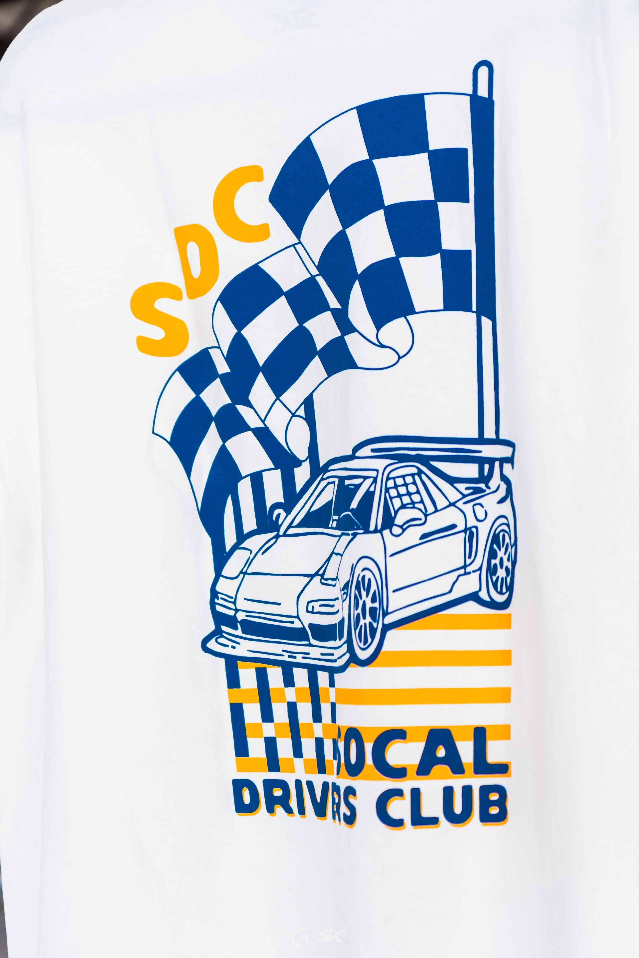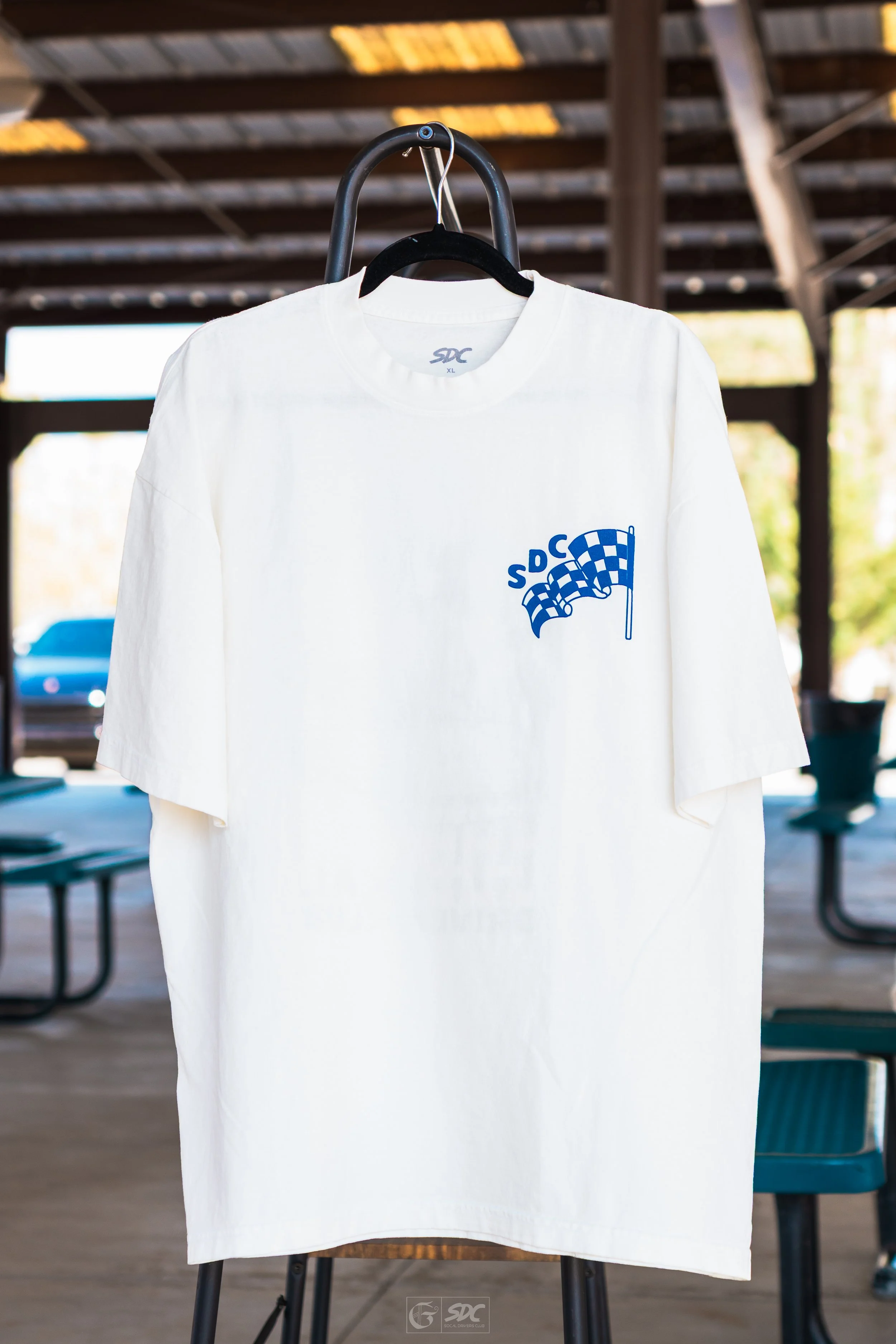 “Pursuit of the Perfect Lap” design on back with OG SDC logo front hit.